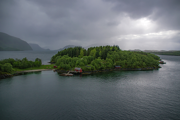 Sailing through the Norwegian Fjords on a cloudy day and passed by this picturesque island.